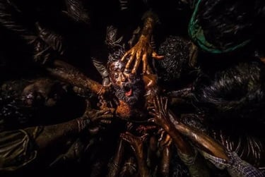 The reception Kuttachan gets in the village is reminiscent of the welcome a hunting hero receives from a primitive tribe. In every man lives the primitive who longs to fulfill his desire for hunting, killing blood, and victory over one another. The gun in Kuttachan's hand is the symbol of his power and authority over others. It is because of his mastery of the gun that Kuttachan is adored. It is the loss of that gun that leads to his misfortune in the hunt. The hunt for the buffalo is to Kuttachan nothing but a quest for his enemy. He gives more importance to fighting Antony than the buffalo. But it is notable that even after being stabbed by Antony, he never exposes him. Kuttachan might not be able to admit that it is Antony who stabbed him. He tells everyone that it is the buffalo that attacked him.